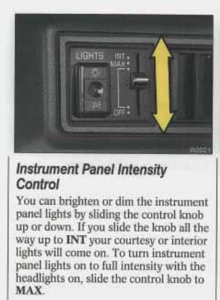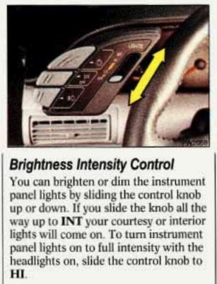 Doesn't the dimmer switch already allow this? My Regal has a detent immediately before it turns on the interior lights where the cluster and all the displays are at full brightness. I seem to recall my 92 cutlass being the same way, as well as my parents old 97 Lumina....so I just assumed they all worked the same way.