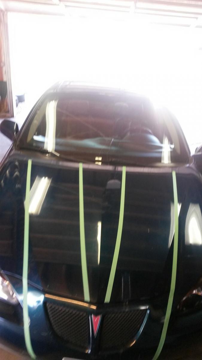 pwmin Posted May 3, 2015 Report Posted May 3, 2015 The front bumper has quite a bit of damage on my GP and the hood also has a big spot that needs attention. In order to address this and hopefully add some "flair", I am going to plasti-dip some hood/bumper stripes. If I like them enough, I might paint them. I took some pictures of possible stripes and am looking for some input on what anyone thinks will look best or if anyone has any suggestions. There's a good amount of gouges in the middle of the bumper, but on the passenger side, some damage extends to around where the middle of "PONTIAC" would be, so I'm trying to cover as much of that as possible. Please look at the pictures and tell me what you think. I know the lines aren't perfect, but I'll make sure they are before I plasti-dip it. Quote