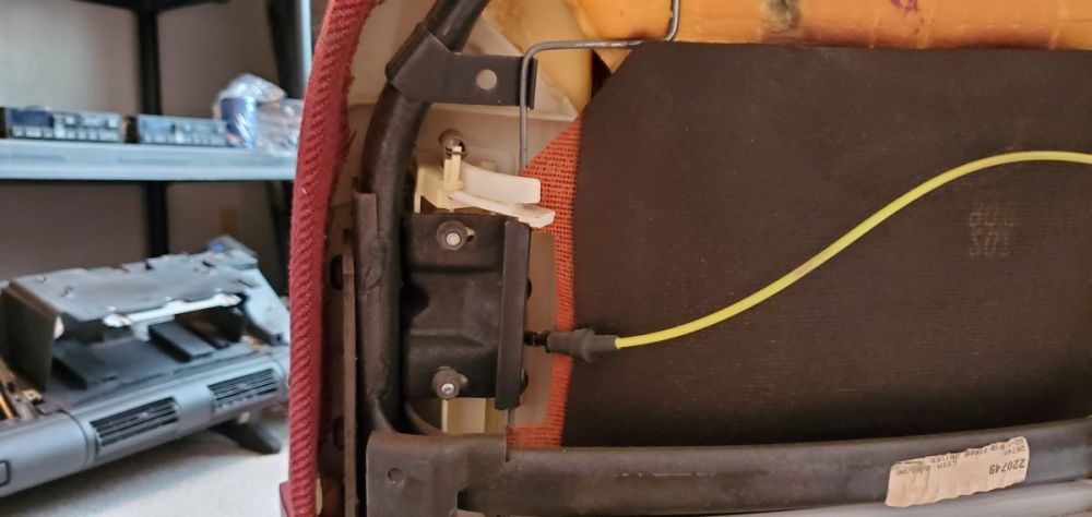 jiggity76 Posted June 22, 2020 Author Report Posted June 22, 2020 (edited) For the upper seat back and for my situation, I wanted to replace my broken side decorative cover and switch out the seat fabrics. The side cover is held on with plastic tabs that go thru the seat back frame and are hot welded onto it. Sort of like a rivet effect only with plastic tabs. I don't have pics of this area but they will need to be drilled out and reattached somehow at a later time maybe using glue or screws, need to think about it a little. Once you have the upper seat cover off, you will see what I mean and how they are attached. To remove the seat fabric, you will see some small staples in a few places, some hog ties, and plastic sleeves that are sewn onto the fabric edges that lock into the metal frame of the seat back. There are also some of these plastic sleeves that are locked into the deep seams or grooves on the bolster side of the fabric. Just feel your way around the fabric and each individual area and how it's attached will reveal itself. Edited June 23, 2020 by jiggity76 Quote